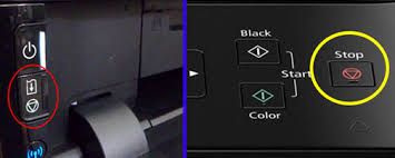 - Localisez le bouton « Stop/Reset » (triangle rouge dans un cercle rouge) sur votre imprimante.