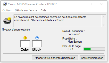 - L'imprimante autorisera l'impression sans indication des niveaux d'encre.