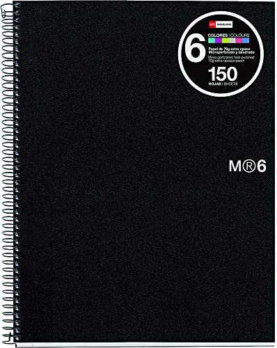 Miquel Rius Notebook6 Cahier Spirale Horizontal Format A4 7mm - 150 Feuilles de 70gr Microperforé 4 Trous - Couvertures Polypropylène - Couleur Noir